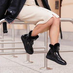 - Utilitate Practică: Cele două fermoare laterale permit o încălțare ușoară și rapidă, fără efort.