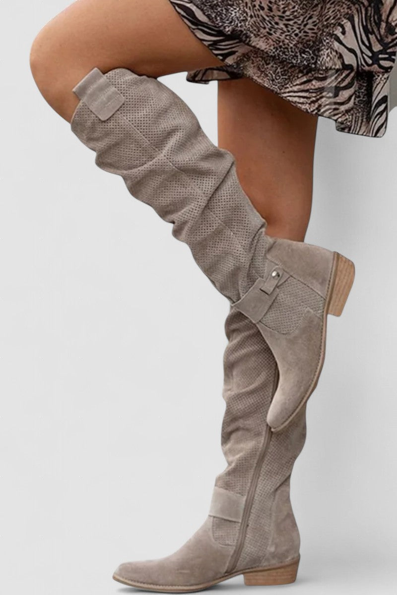 Romani – Cizme de Damă Până la Genunchi din Suede cu Toc Mic