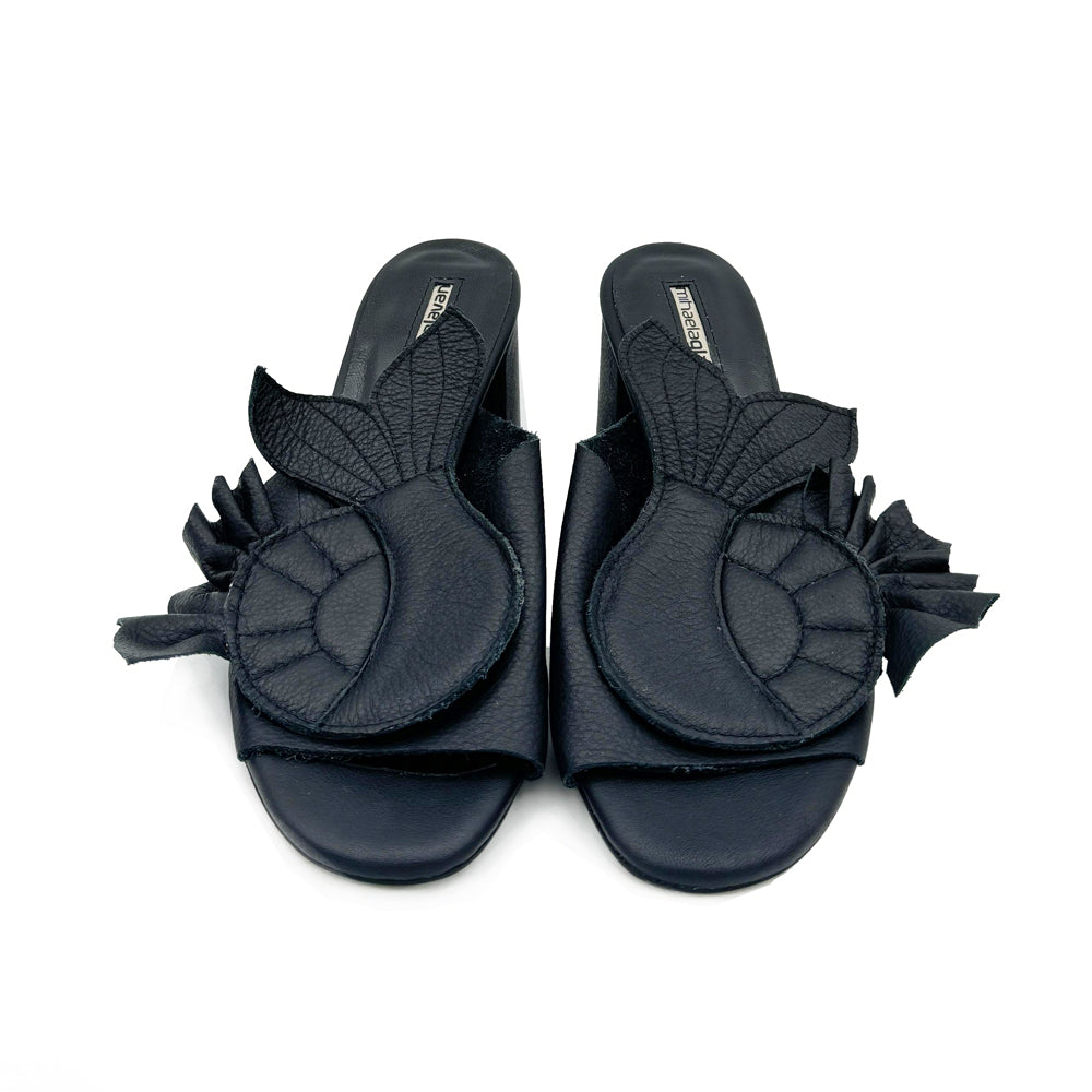 The Joker in the Pack black leather mules sandals stand as a statement of  playful style and comfort. These slip-on mules, designed from supple black leather, offer a sleek and easy-to-wear option for any wardrobe. The quilted details hint at meticulous craftsmanship. Inside, the natural leather lining ensures your feet are cradled in comfort throughout the day. The block heels, measuring at 7.5 cm, provide the perfect amount of lift, enhancing posture without sacrificing ease of wear.