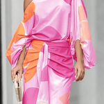 Croială: Linie A lejeră, cu talie marcată și legată pentru un confort optim.