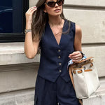 Set de pantaloni scurți casual în bleumarin închis cu buzunare
