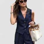 Tip de croială: Croială regulată atât pentru top, cât și pentru pantaloni scurți, concepută pentru confort cu un aer sofisticat.