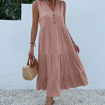- Design: Maxi lungime lejeră, decolteu în V și nasturi subtili pentru un plus de eleganță.
