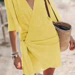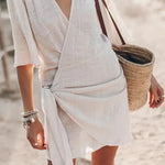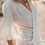 Angelin – Rochie elegantă din in cu decolteu în V, perfectă pentru vară