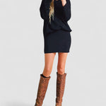 Îmbunătățește-ți garderoba cu Annabelle | Rochie Neagră cu Mânecă Lungă, o combinație atemporală de rafinament și farmec modern. Această rochie îți evidențiază formele, oferind în același timp confort și stil. Ideală pentru muncă, întâlniri sau ocazii speciale – o rochie versatilă pe care te poți baza întotdeauna.