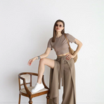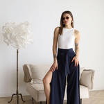 Descoperiți pantalonii Ariane din in cu picior lat, o piesă esențială pentru un stil modern și relaxat. Proiectați să îmbine eleganța cu confortul, acești pantaloni sunt perfecți pentru ieșiri casuale sau ocazii speciale. Fabricati dintr-un amestec de bumbac și in de înaltă calitate, oferă o senzație moale pe piele, în timp ce oferă un aspect rafinat și fără efort.