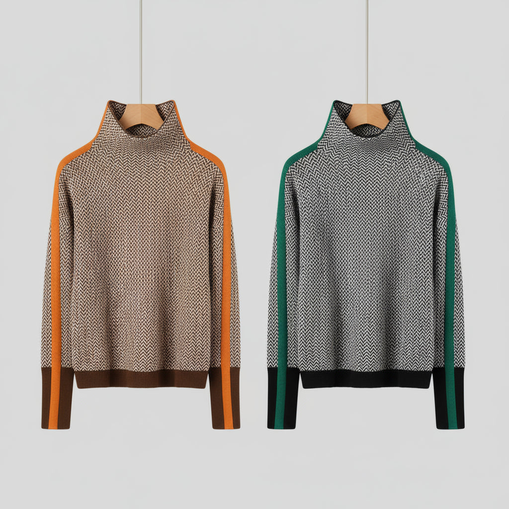 Puloverul Loredana este alegerea perfectă pentru femeile care își doresc un echilibru între eleganță și confort. Realizat dintr-un material moale și călduros, cu un design rafinat în model zig-zag și accente pe mâneci, oferă o notă modernă oricărei ținute de iarnă. Gulerul înalt adaugă un plus de stil și protecție împotriva frigului, făcându-l piesa ideală pentru zilele reci.