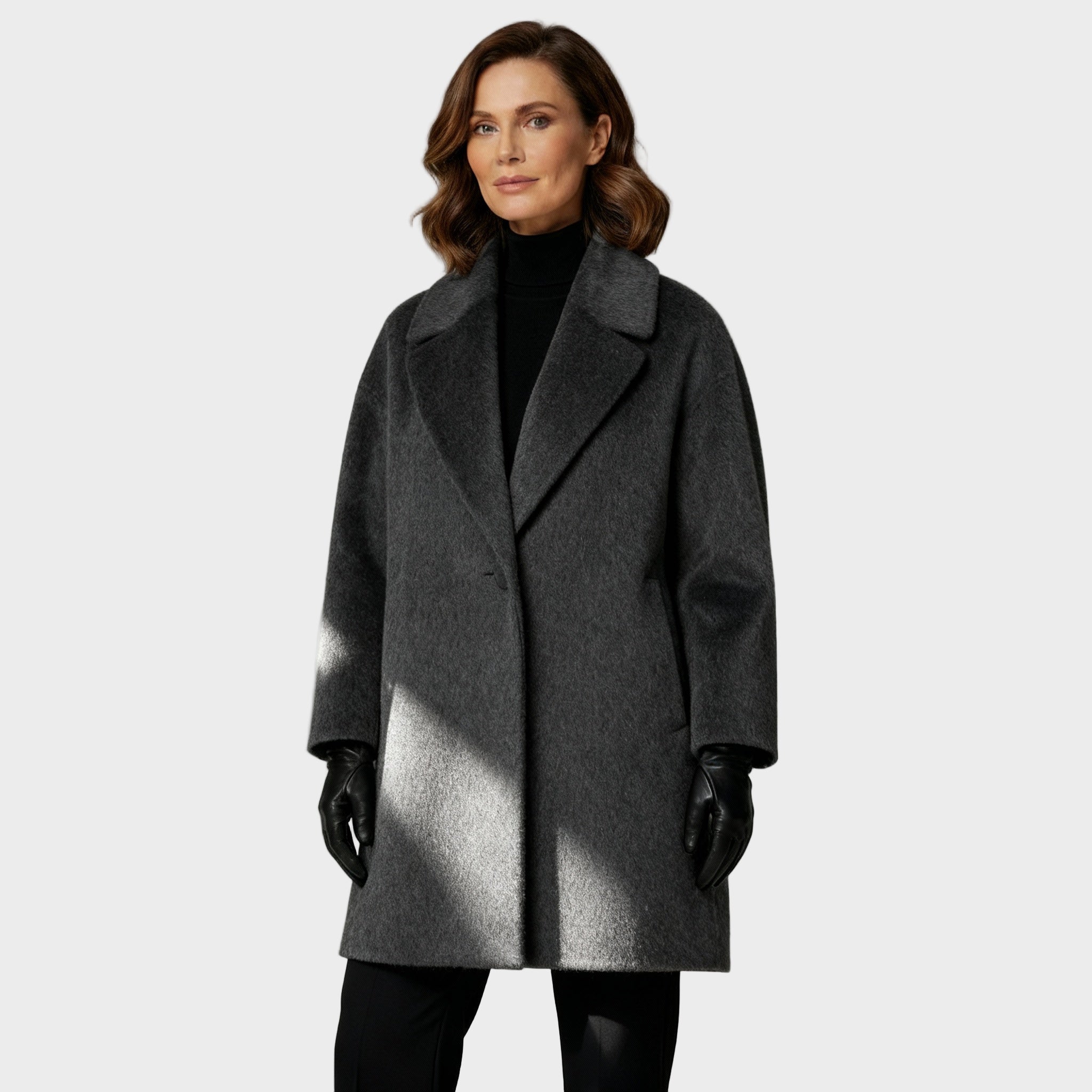 Pentru că este o piesă statement — sofisticată, atemporală și cu o croială perfectă care flatează orice siluetă. Materialul premium atent selectat oferă un confort termic excelent și o senzație plăcută la purtare.